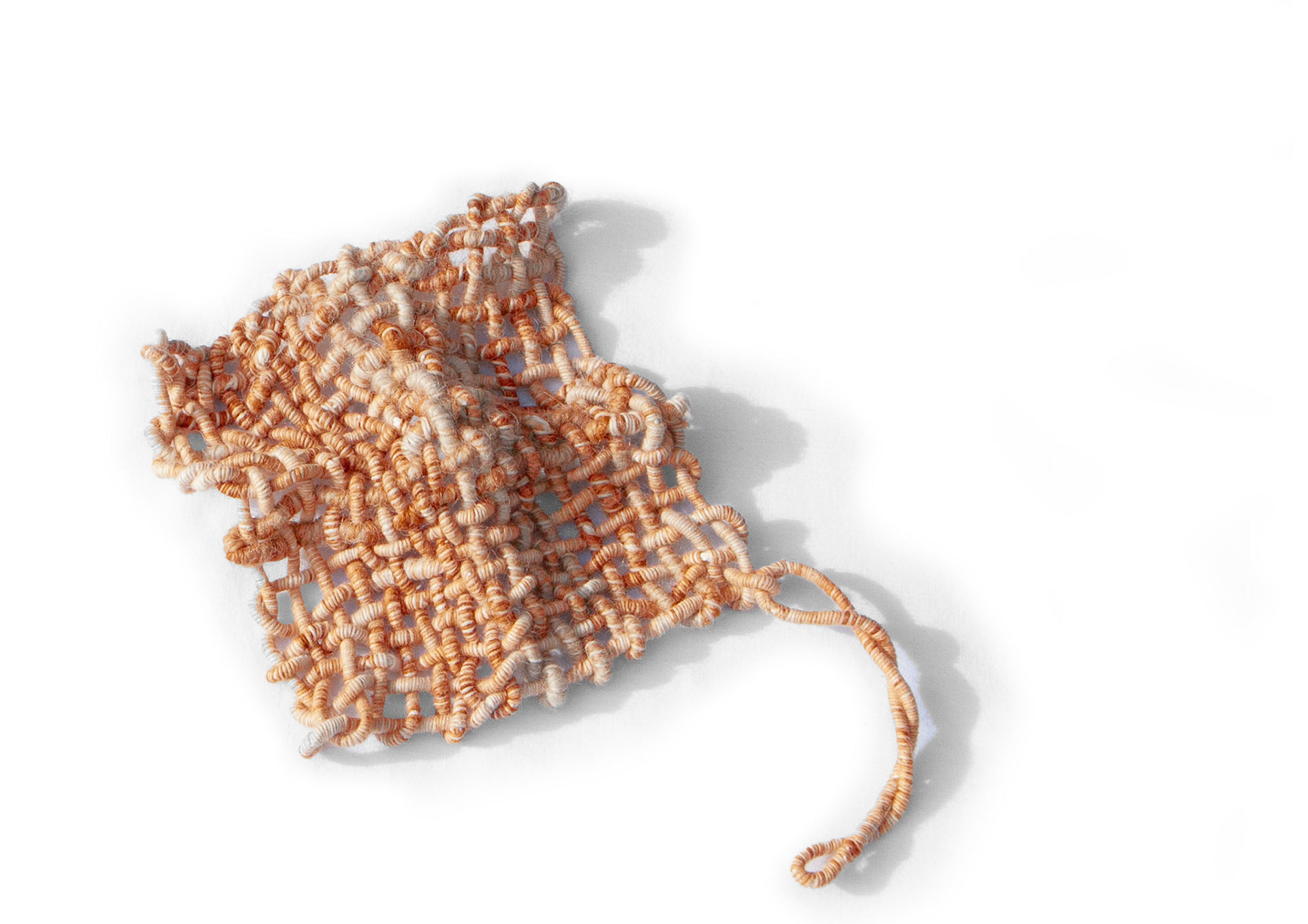 Unearthing Alchemy is a project that explores our deep and often overlooked connection to the natural world—sky, stars, and sea—inviting reflection on both what is visible and what remains hidden. As our reliance on technology grows, we risk losing vital ancestral knowledge: reading the sky, tracking the seasons, and sensing the tides. The warming seas and shifting currents are powerful reminders that nature continues to shape our lives, urging us to preserve these ways of knowing for future generations. The collection consists of handmade artifacts, created using slow craft techniques including weaving, hand stitching, and intuitive textile assembly. Each material—silk, cotton, linen, wool, wood, and tree buds—is allowed to dictate its own form, resulting in organic shapes and textures. Natural dyes such as indigo, eucalyptus, and rust are used, embracing the unpredictability and beauty of their colour outcomes. Second-hand plastic beads are also incorporated, bridging traditional craft with contemporary materials and highlighting the intersection of past and present.
